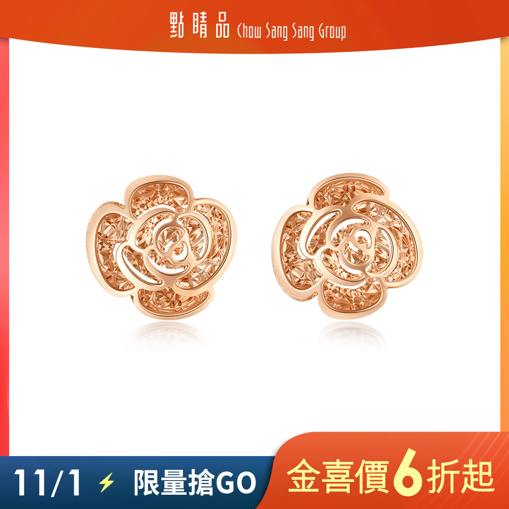 優雅山茶花18K玫瑰金耳環