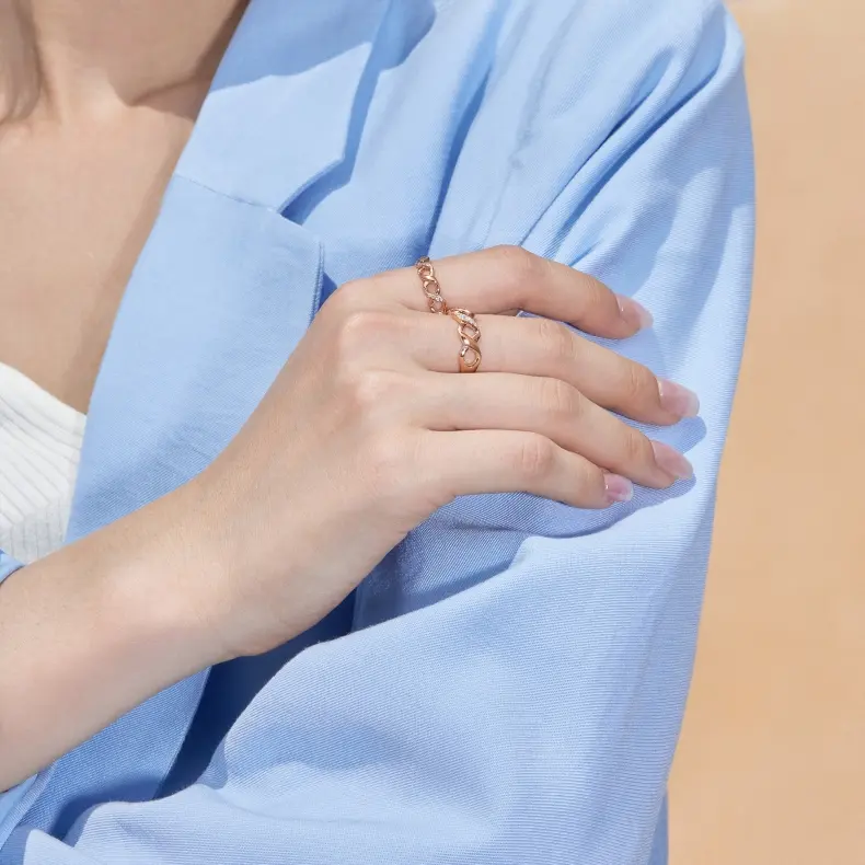 簡約繩結18K玫瑰金戒指
