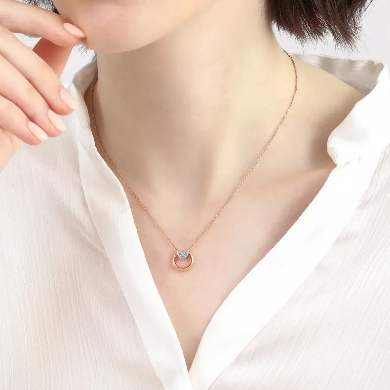 比彼心18K玫瑰金鑽石項鍊
