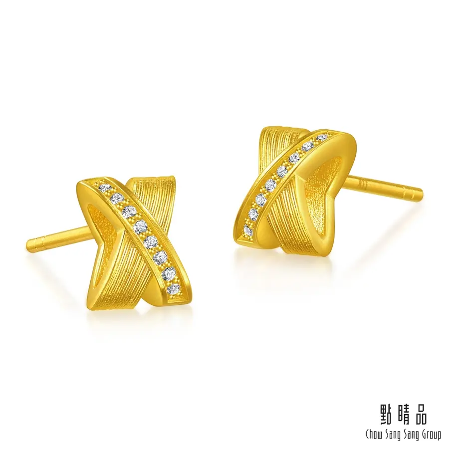 閃耀焦點鑽石黃金耳環
