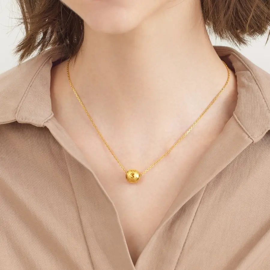 六字大明咒 轉運珠黃金吊墜