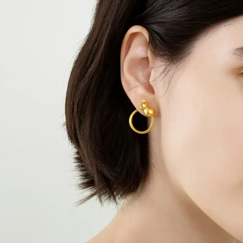 PetChat立體貓咪 黃金耳環