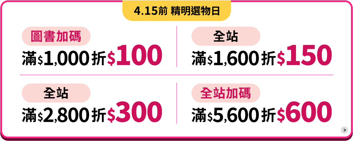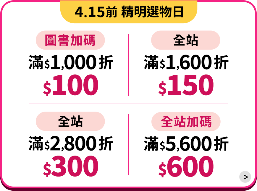 *電子書、部分商品不參與全站活動,商品是否適用折扣請依購物車顯示為準。